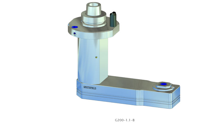 G200 地下钻孔主轴因其设计而设计用于在工件的底面钻孔。刀架的主轴旋转方向与驱动器的旋转方向相反。驱动速度以 1:1 的比例传递到刀架。间歇运行时主轴最高转速可达 12,000 rpm。尺寸是可变的,几乎可以制成任何所需的尺寸。