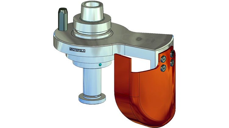 直接安装式 DN-HSK 用于直接安装刀具,用于加工实木或仿木复合材料。根据所使用的仿形工具,穿过扭矩支架的适配器外壳用于容纳切屑导向板。