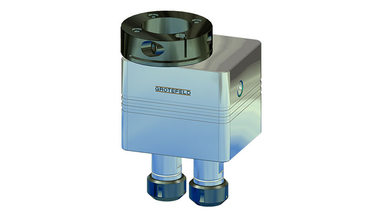 带夹紧环 B100 的钻孔齿轮也可以由钻孔主轴 B045 和驱动单元 D045 驱动。此外,使用我们的驱动适配器 DN 和 DMN 可以适应机床主轴以及 GROTEFELD 旋转单元 DVM。