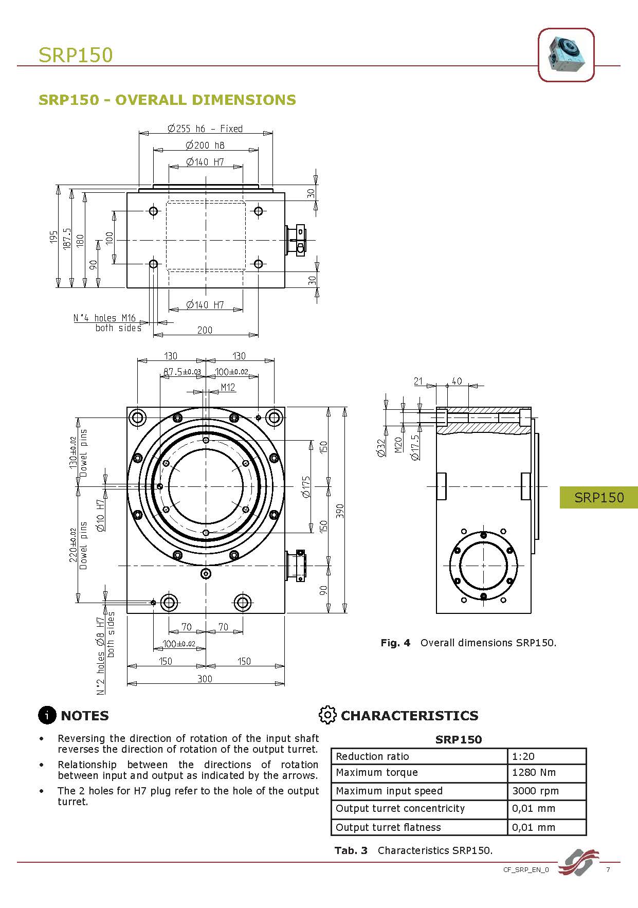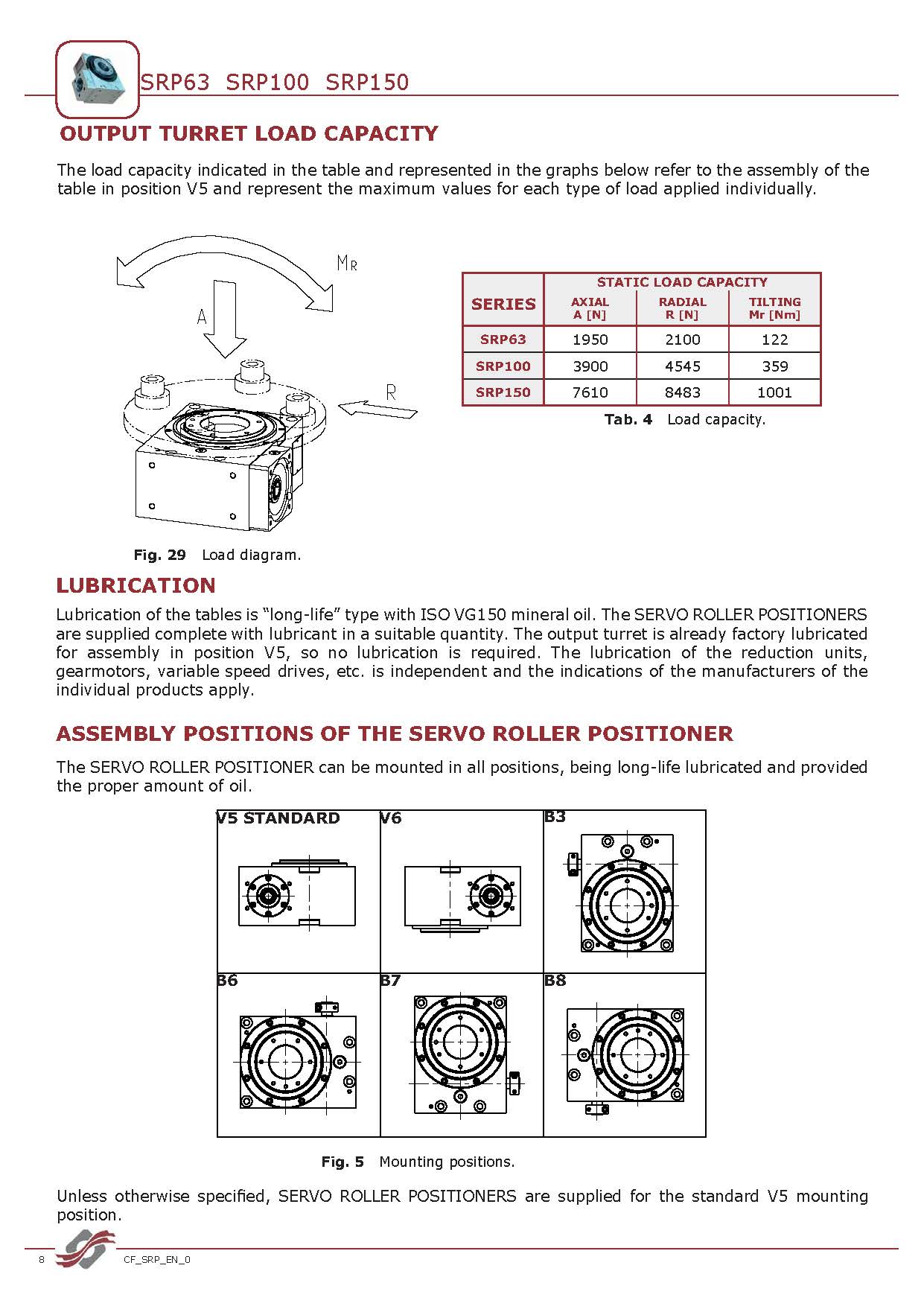 | 球面凸轮标准型号: | SRP63 - SRP100 - SRP150 |
