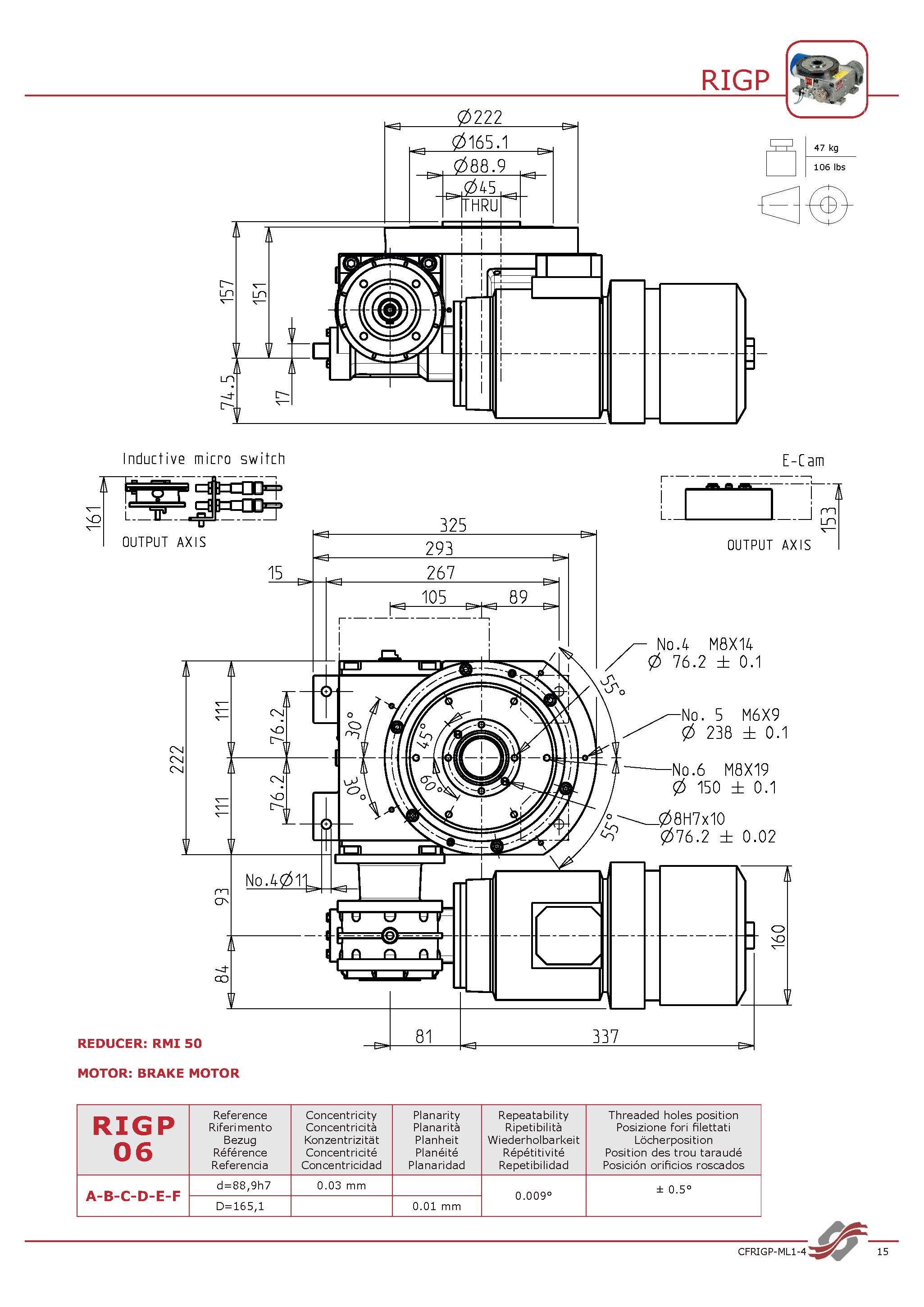 转盘采用大直径交叉滚子轴承支撑,可承受高轴向和倾覆载荷,同时确保高精度和刚度。球面凸轮,氮化或研磨和回火,确保无振动运动和高精度定位。